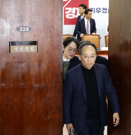 추경호 국민의힘 원내대표가 4일 국회에서 열린 최고위원회의를 마치고 나오고 있다. 김현민 기자 |
