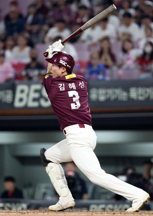 프로야구 키움의 김혜성이 지난해 8월 15일 광주KIA챔피언스필드에서 열린 KIA와 경기에서 8회 좌전 안타를 때리고 있다. 이날 그는 4안타를 치며 맹활약했다. 광주=연합뉴스 |
