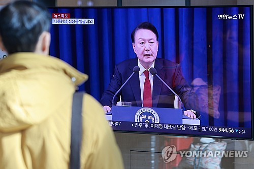 서울역 대합실 텔레비전서 나오는 비상계엄 관련 보도 |