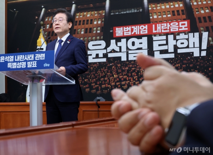 이재명 더불어민주당 대표가 6일 오전 서울 여의도 국회에서 '윤석열 내란사태 관련 특별성명'을 발표하고 있다. 2024.12.06. /사진=뉴시스 |