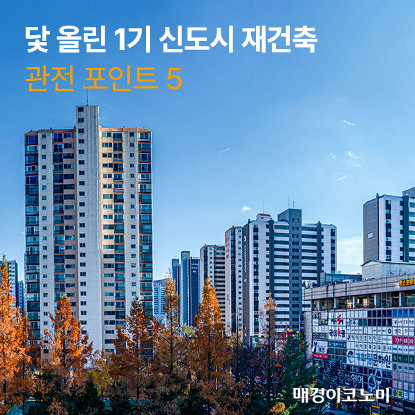 매경이코노미가 1기 신도시 재건축 관련 5가지 관전 포인트를 들여다봤습니다.