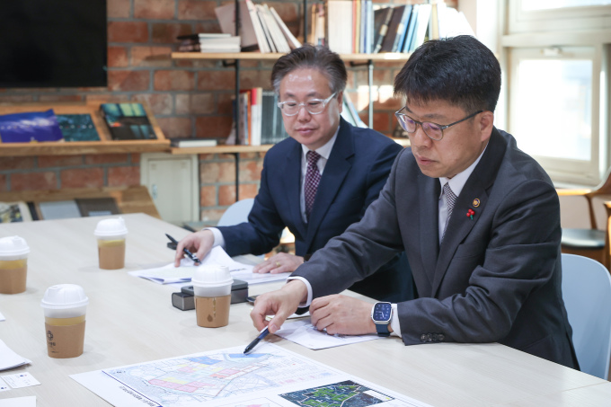 현장을 찾은 진 차관은 평촌 신도시 정비와 관련한 지자체 의견을 청취하고 선도지구 현장 상황을 꼼꼼히 살폈다.