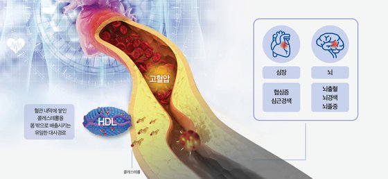 또한 HDL은 단핵구를 혈관내피세포 쪽으로 이동하고 부착하게 하는 MCP-1을 억제해 초기 죽상동맥경화 진행을 억제하며 플라크를 안정화해 파열을 예방하는 것으로 알려졌다. 게다가 고혈압을 예방하는 데도 도움을 준다. HDL은 혈관 내피세포의 기능을 활성화하며, 혈관의 이완을 촉진하고 플라크에서의 콜레스테롤 배출을 통해 혈관 내강을 넓힘으로써 고혈압 예방 및 혈압 조절에 도움을 줄 수 있다.