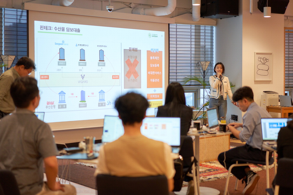 부산 핀테크 허브에서 한 창업자가 사업 모델을 발표하고 있다. 부산시 |