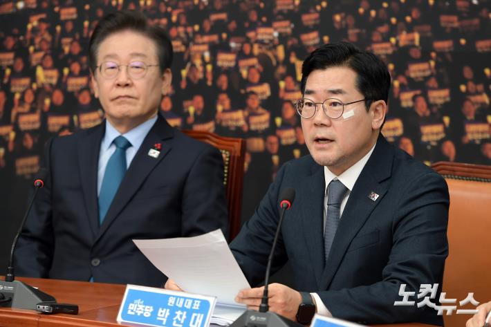 더불어민주당 박찬대 원내대표가 9일 서울 여의도 국회에서 열린 최고위원회의에서 발언을 하고 있다.