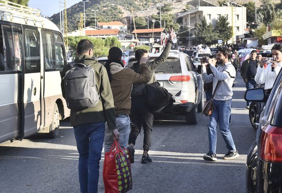 시리아의 바샤르 알아사드 정권 붕괴소식이 전해진 8일 시리아와 레바논의 마스나 국경 교차로에 귀국하려는 시라아 난민들이 몰려들었다. 현재 해외에 거주하는 시리아 난민은 500만 명 이상으로, 이 중 300만 명이 튀르키예에 머무르고 있다. [UPI=연합뉴스]