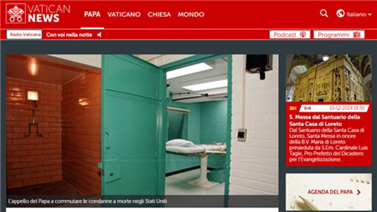 ▲ 프란치스코 교황이 일요일인 지난 8일 주일 정오 기도에서 미국 사형수들의 감형을 촉구한 사실을 전한 교황청 공식 매체 '바티칸 뉴스' 화면 캡처