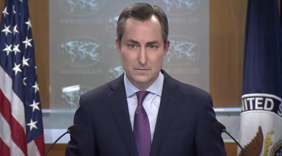 매슈 밀러 미국 국무부 대변인이 9일(현지시간) 워싱턴 DC 국무부 청사에서 언론 브리핑을 하고 있다. 사진 국무부 홈페이지 캡처 |