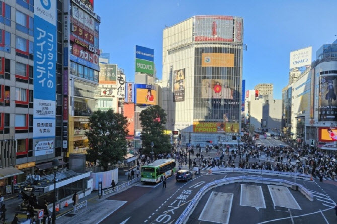 일본 도쿄 시부야역 주변 명소인 스크램블 교차로.(사진=연합뉴스) |