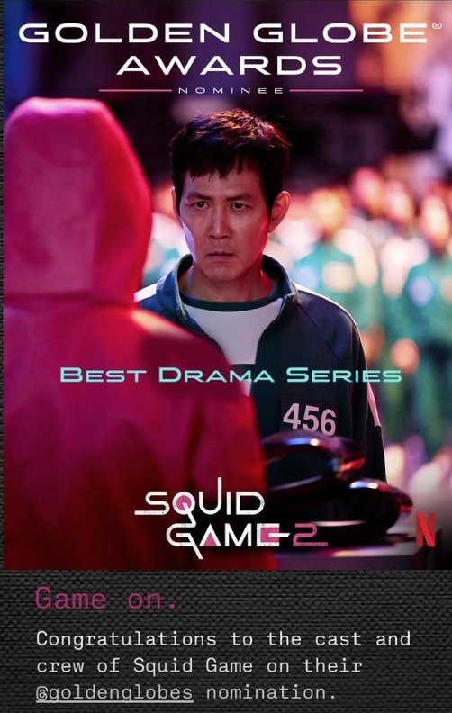 앞서 '오징어 게임' 시즌1은 2022년 1월에 열린 제79회 골든글로브 시상식에서 TV 부문 작품상과 남우주연상(이정재), 남우조연상(오영수) 등 3개 부문 후보에 올랐다. 당시 ‘깐부 할아버지’ 오영수가 한국 배우 최초로 남우조연상을 들어올렸다.