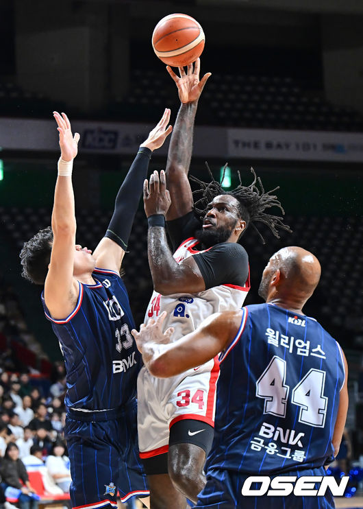 서울 SK 자밀 워니가 부산 KCC 이승현의 마크를 피해 골밑슛을 시도하고 있다. 2024.12.10 / foto0307@osen.co.kr