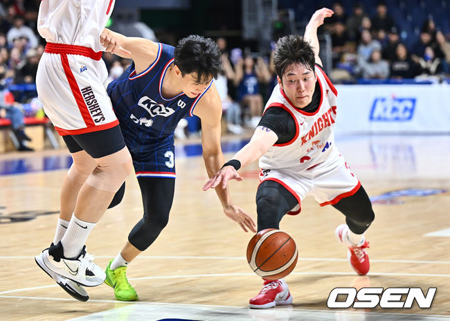 부산 KCC 허웅과 서울 SK 최원혁이 루즈볼을 잡으려 하고 있다. 2024.12.10 / foto0307@osen.co.kr