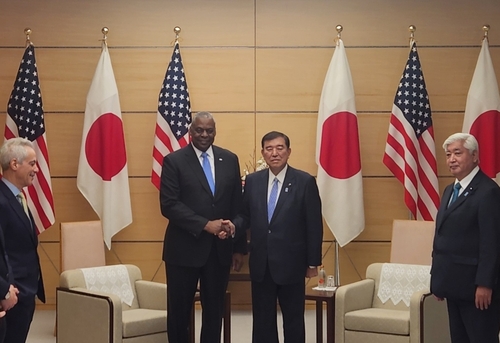 오스틴 장관은 "이시바 총리가 지적한 대로 지금은 매우 역동적인 시기이며 일본의 견실함에 감사한다"며 미일 동맹이 역내 평화와 안정의 초석으로 남기를 희망한다고 말했다.