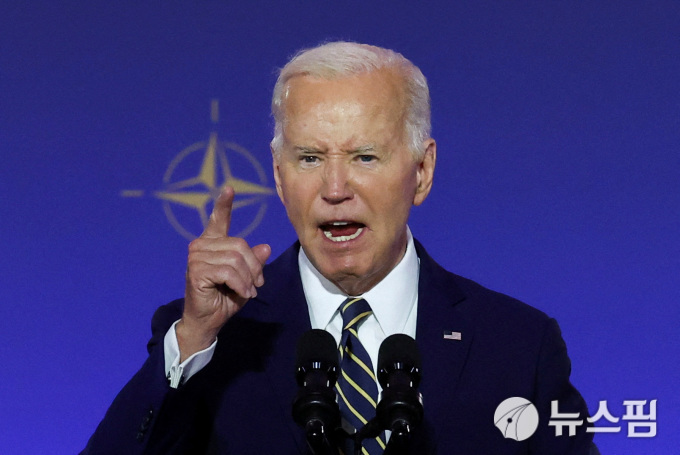 9일(현지시간) 미국 워싱턴DC에서 진행된 북대서양조약기구(NATO·나토) 창설 75주년 기념행사에서 발언하는 조 바이든 미 대통령. [사진=로이터 뉴스핌] |
