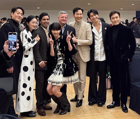 황동혁 감독 그리고 시즌2의 주역인 배우 이정재, 이병헌, 임시완, 강하늘, 위하준, 박규영, 이진욱, 박성훈, 양동근, 강애심, 이서환, 조유리 등과 즐거운 만남을 갖고 있기도.
