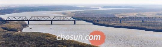 두만강 하류의 중국 팡촨 전망대에서 바라본 북·중·러 접경 지역. 두만강을 가로지른 다리는 조로철도대교로, 다리 왼쪽은 러시아, 오른쪽은 북한, 아래쪽은 중국이다. /조선일보DB |