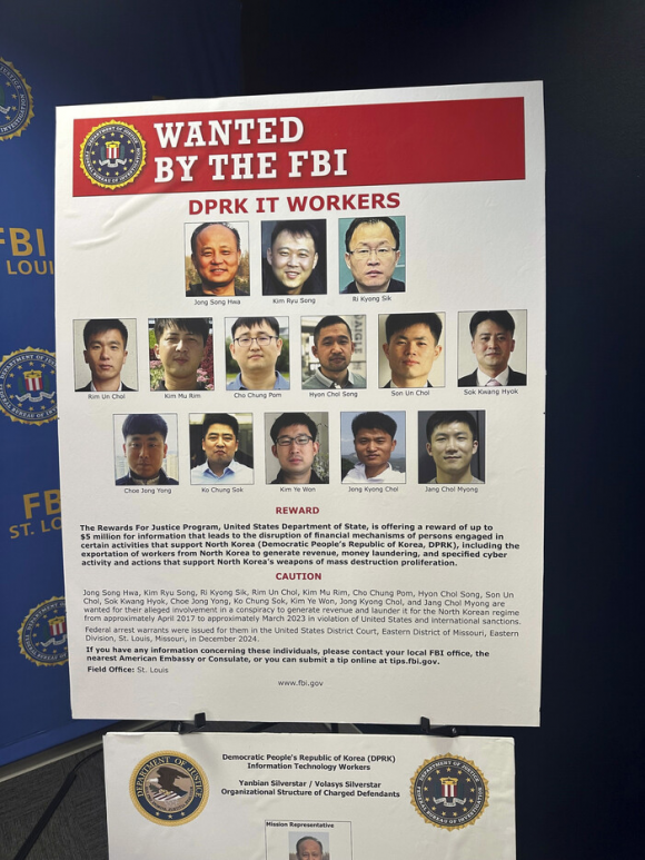 미국 연방수사국(FBI)이 북한 정보기술(IT) 노동자 위장 취업 관련자들에 대한 정보 제공을 기다린다며 공개한 현상수배 전단. AP 연합뉴스 |