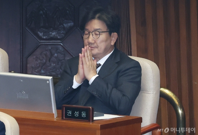 (서울=뉴스1) 김민지 기자 = 권성동 국민의힘 원내대표, 장동혁 최고위원이 14일 오후 서울 여의도 국회에서 열린 제419회국회(임시회) 제4차 본회의에서 윤석열 대통령 탄핵소추안 표결 결과를 기다리며 두손을 모으고 있다. 2024.12.14/뉴스1 Copyright (C) 뉴스1. All rights reserved. 무단 전재 및 재배포, AI학습 이용 금지. /사진=(서울=뉴스1) 김민지 기자 |
