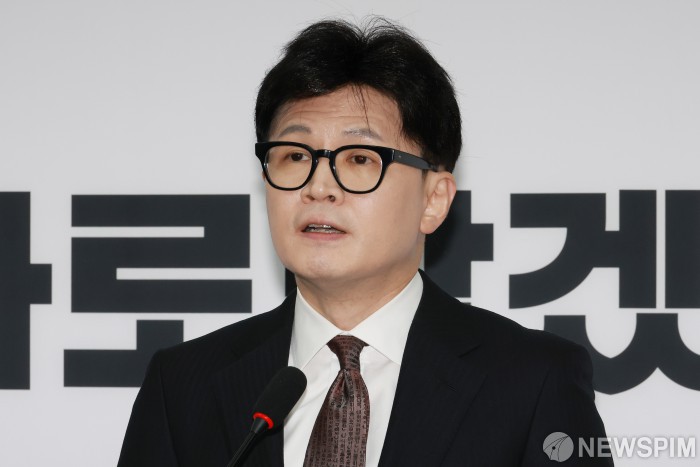 [서울=뉴스핌] 이형석 기자 = 한동훈 국민의힘 대표가 16일 오전 서울 여의도 국회에서 당대표 사퇴 기자회견을 열고 있다. 2024.12.16 leehs@newspim.com