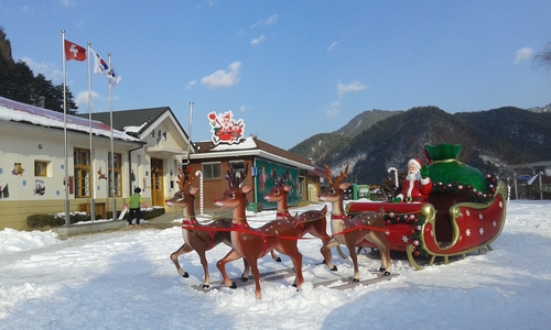 분천역(왼쪽)과 산타썰매 |
