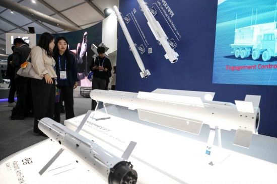 2일 충남 계룡대에서 열린 '대한민국 국제방위산업전시회'에서 LIG넥스원의 신궁과 현궁을 비롯한 대공미사일이 전시돼 있다. 사진=강진형 기자aymsdream@ |