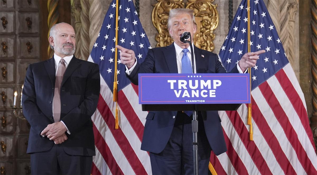 도널드 트럼프 미국 대통령 당선인(오른쪽)이 16일(현지 시간) 플로리다주 팜비치의 자택 마러라고리조트에서 당선 후 첫 기자회견을 갖고 관세, 미국 투자 유치 등 미국 우선주의 공약을 강조했다. 트럼프 2기의 상무장관으로 지명된 하워드 러트닉 캔터피츠제럴드 최고경영자(CEO)도 회견에 동석했다. 팜비치=AP 뉴시스 |