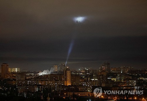 러시아 드론 찾으려 탐조등 동원하는 키이우 |