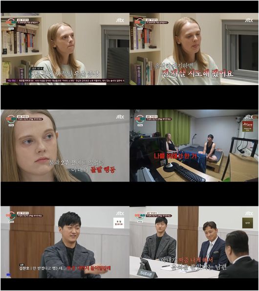 19일 방영한 JTBC ‘이혼숙려캠프’에서는 첫 국제 부부가 등장했다. 미국인인 아내 윤희아는 극심한 우울증에 시달리고 있었다.