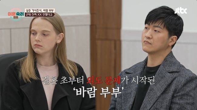 이날 방송에서 7기 국제 부부의 한국 남편은 세 번의 외도를 한 것으로 알려졌다. 남편은 결혼 7개월차부터 오픈채팅방에서 여자와 만나 술을 마시고 함께 숙박업소를 갔다고 밝혔다.