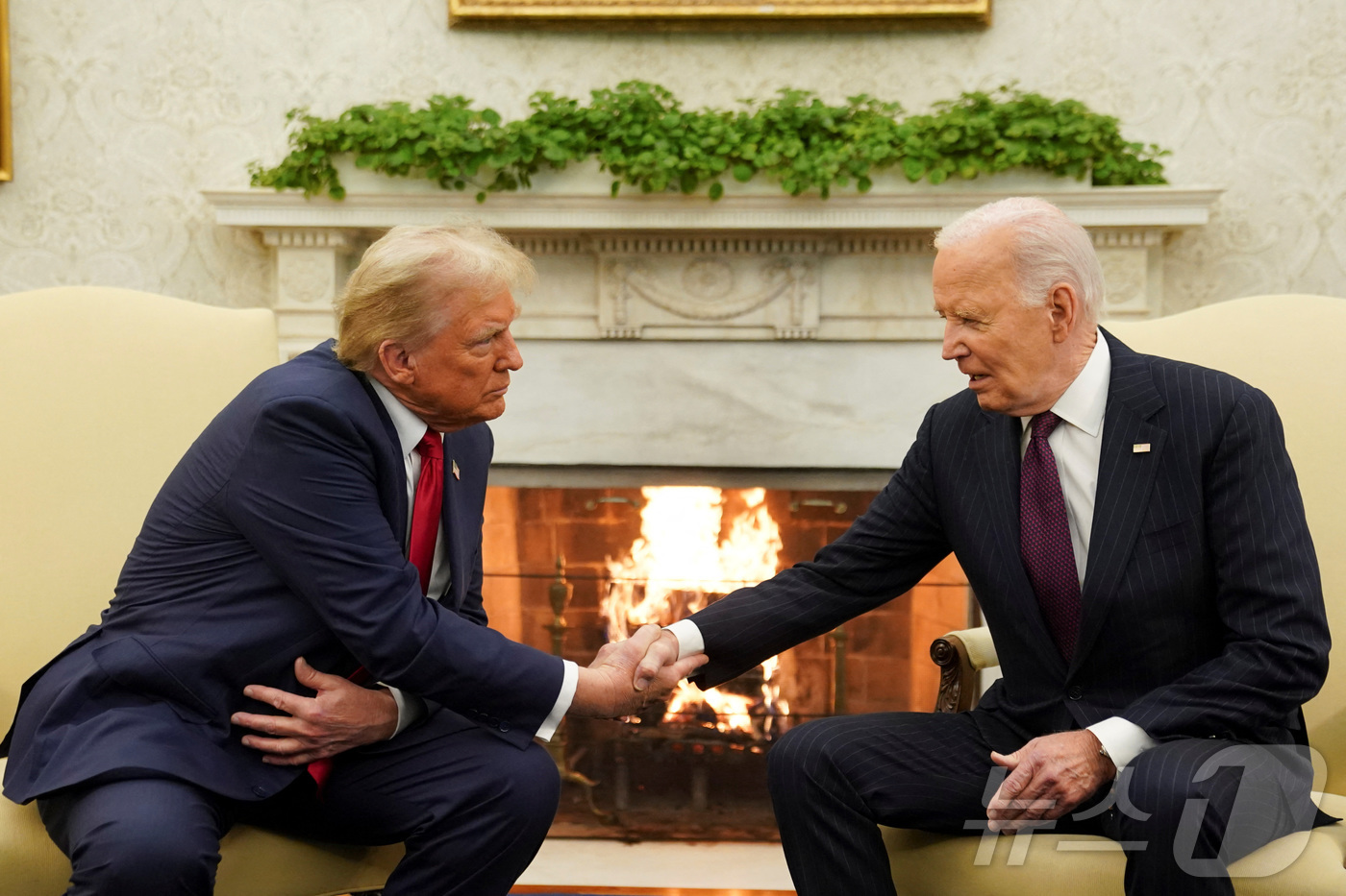 조 바이든 미국 대통령과 도널드 트럼프 대통령 당선인이 13일 (현지시간) 워싱턴 백악관에서 만나 악수를 하고 있다. 2024.11.14 ⓒ 로이터=뉴스1 ⓒ News1 우동명 기자 |