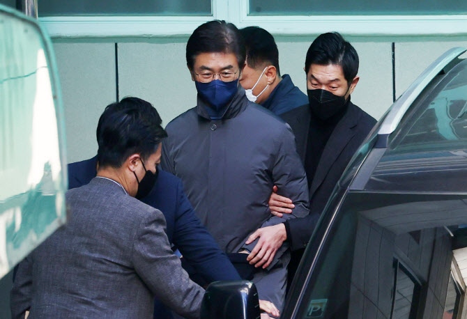 김봉식, 남색 마스크 착용·수갑 찬 채 차량 탑승