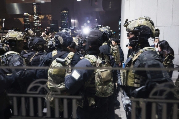 윤석열 대통령이 비상계엄을 선포한 직후인 지난 4일 서울 여의도 국회 본관에서 계엄군이 진입 준비를 하고 있다. 2024.12.4 (사진=연합뉴스) |