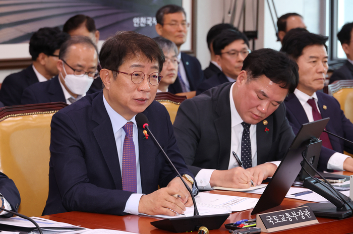 박상우 국토교통부 장관이 23일 오전 국회에서 열린 국토교통위원회 전체회의에서 의원 질의에 답변하고 있다. 연합뉴스 |