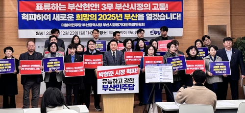 (부산=연합뉴스) 오수희 기자 = 더불어민주당 부산시정 평가·대안 특별위원회는 "윤석열 대통령 탄핵 반대 성명에 동참한 뒤 변화된 입장을 발표하지 않는 박형준 부산시장은 즉각 사퇴하라"고 23일 밝혔다.