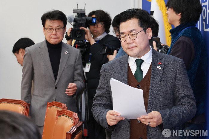 [서울=뉴스핌] 이형석 기자 = 박찬대 더불어민주당 원내대표가 24일 오전 서울 여의도 국회에서 열린 원내대책회의에 참석하고 있다. 2024.12.24 leehs@newspim.com