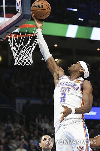 (서울=연합뉴스) 안홍석 기자 = 미국프로농구(NBA) 오클라호마시티 선더가 무려 41점을 쓸어 담은 샤이 길저스알렉산더를 앞세워 워싱턴 위저즈를 물리쳤다.