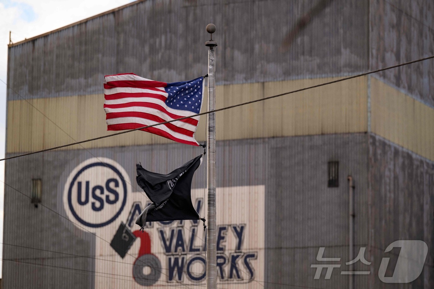 펜실베이니아 브래독에 위치한 US 스틸 에드가 톰슨 제철소 앞에 게양된 성조기가 휘날리고 있다. ⓒ AFP=뉴스1 ⓒ News1 류정민 특파원 |