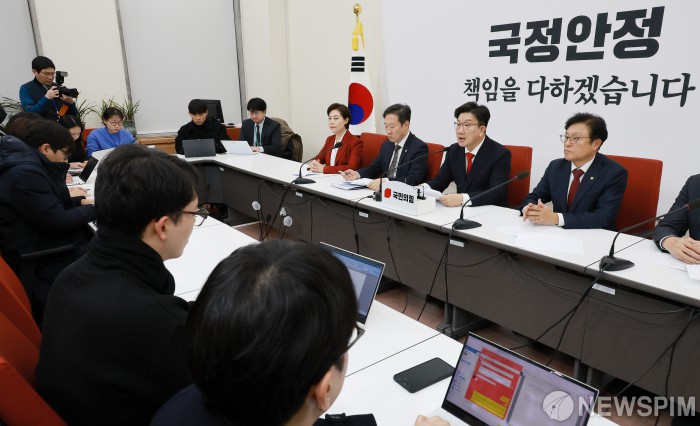 [서울=뉴스핌] 이형석 기자 = 권성동 국민의힘 원내대표가 24일 오후 서울 여의도 국회에서 더불어민주당의 한덕수 대통령 권한대행 국무총리 탄핵안에 대한 입장을 밝히고 있다. 2024.12.24 leehs@newspim.com