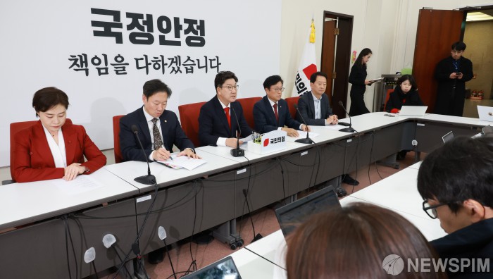 [서울=뉴스핌] 이형석 기자 = 권성동 국민의힘 원내대표가 24일 오후 서울 여의도 국회에서 더불어민주당의 한덕수 대통령 권한대행 국무총리 탄핵안에 대한 입장을 밝히고 있다. 2024.12.24 leehs@newspim.com