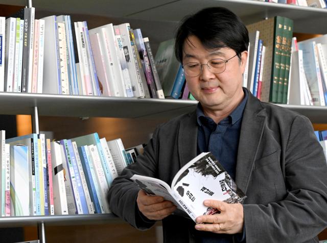 홍성욱 서울대 과학학과 교수가 20세기 후반 이후의 수많은 재난을 '기술재난'이라는 범주로 다시 파악한 자신의 저서 '우리는 재난을 모른다'를 보고 있다. 서재훈 기자 |
