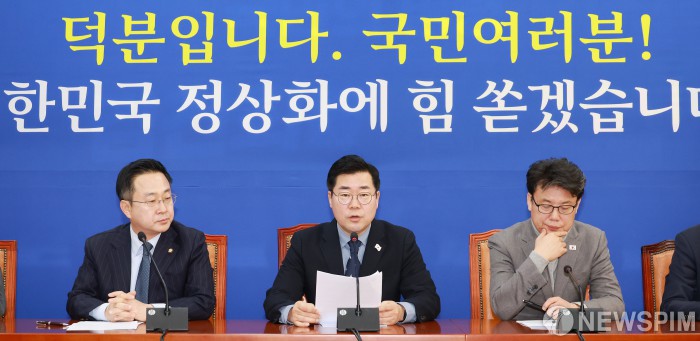 [서울=뉴스핌] 이형석 기자 = 박찬대 더불어민주당 원내대표가 26일 오전 서울 여의도 국회에서 열린 정책조정회의에서 모두발언을 하고 있다. 2024.12.26 leehs@newspim.com