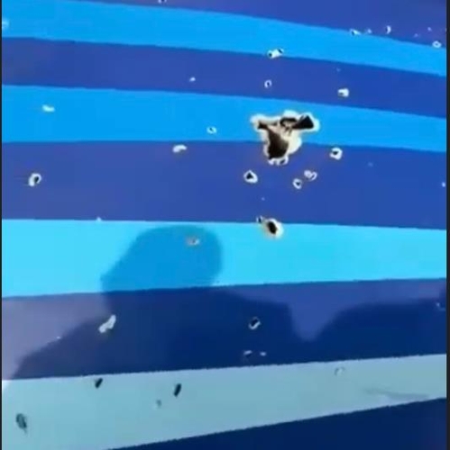 여객기 꼬리날개에서 총탄이나 파편에 맞은 흔적처럼 보이는 손상 [아제르바이잔 소셜미디어 캡처. 재판매 및 DB 금지] |