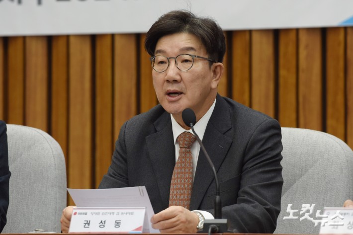 국민의힘 권성동 당대표 권한대행 겸 원내대표가 27일 서울 여의도 국회에서 열린 내수경기활성화 민당정협의회에서 발언을 하고 있다.