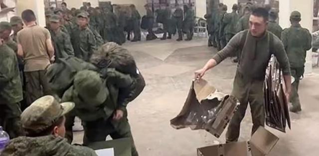 18일(현지시간) 러시아 동부의 한 군사 훈련 시설에서 북한군으로 추정되는 병사들이 물자를 받아가고 있는 모습. [사진=아주경제DB] |
