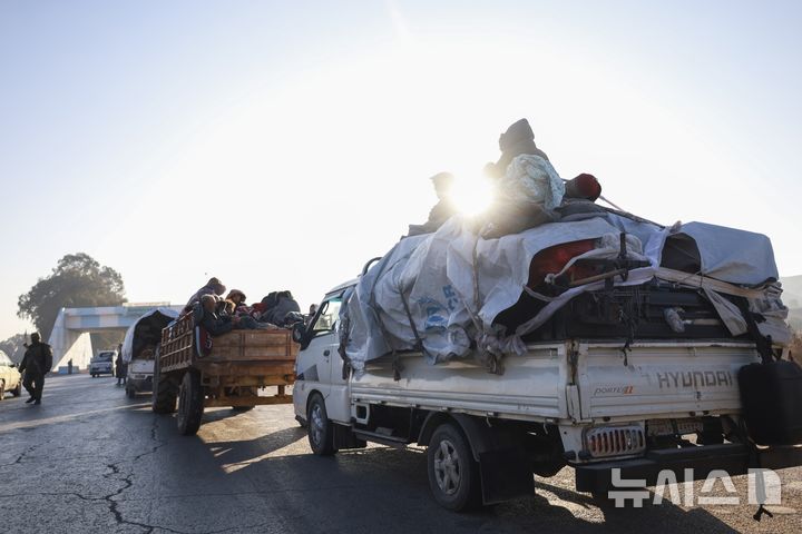 [라카=AP/뉴시스] 12월 3일 시리아 북부 알레포에서 시리아 반군으로부터 대피한 쿠르드족이 라카에 있는 쿠르드족 거점 지역에 도착하고 있다. 이날 시리아 반군이 알레포 북부 텔리파트를 장악하자 수천 명의 쿠르드족 주민이 피란길에 올랐다. 2024.12. 29. |