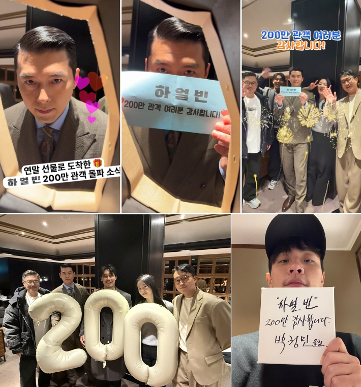 200만 돌파 소식과 함께 공개된 인증 영상은 최근 끈끈한 동지애 팀워크로 화제인 팀 '하얼빈'의 현빈, 조우진, 전여빈, 박훈, 우민호 감독이 함께했다.
