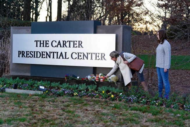 29일(현지시간) 카터센터 앞에 추모객이 보이고 있다. AFP연합뉴스 |
