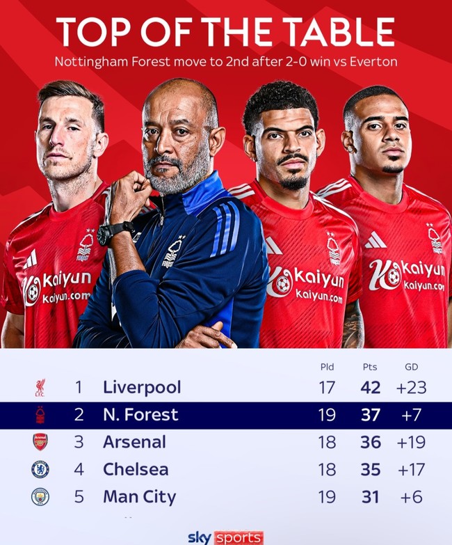 시즌 개막 후 노팅엄은 아예 다른 팀이 됐다. 연승을 통해서 상위권에 균열을 내더니 이젠 5연승을 기록해 2위에 올랐다. 맨체스터 유나이티드, 아스톤 빌라, 브렌트포드를 연파했고 토트넘 훗스퍼와의 경기에서도 1-0 승리를 거뒀고 에버턴까지 2-0으로 제압했다.