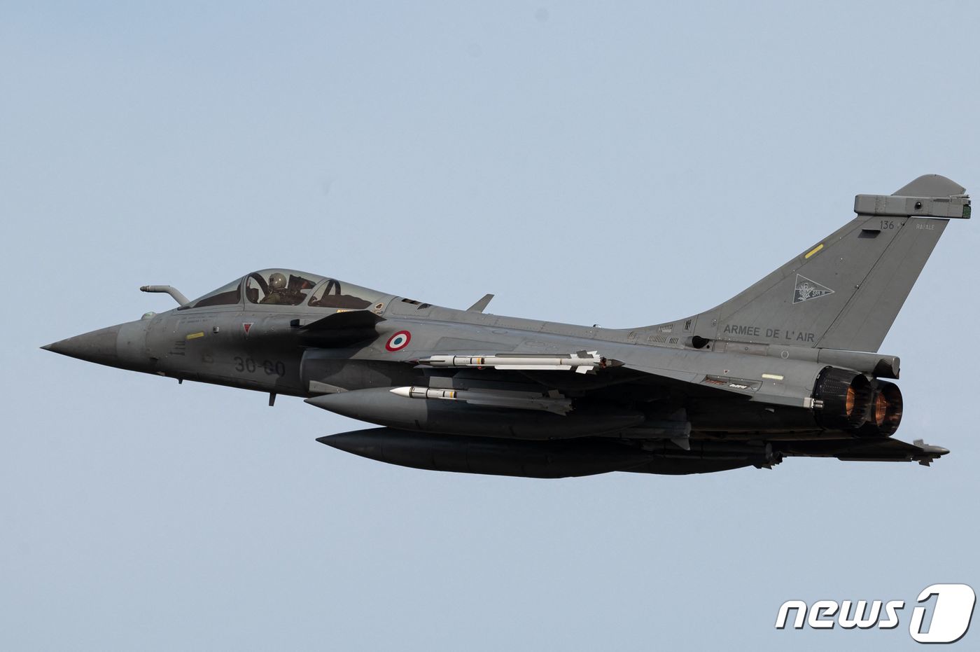 1일(현지시간) 프랑스 몽드마르상 공군 기지에서 라팔 전투기가 폴란드 상공의 경계를 위해 출격을 하고 있다. ⓒ AFP=뉴스1 ⓒ News1 우동명 기자 |