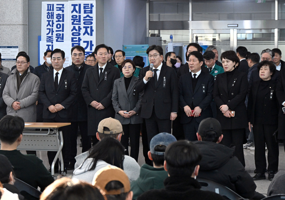 권성동 국민의힘 원내대표가 1일 전남 무안국제공항을 찾아 제주항공 여객기 참사 유가족을 위로하고 있다. 장진영 기자 |